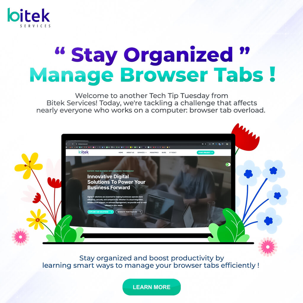 Welcome to another Tech Tip Tuesday from Bitek Services! Today, we’re tackling a challenge that affects nearly everyone who works on a computer: browser tab overload. If you’ve ever found yourself with dozens of tabs open, struggling to find the one you need, or watching your computer slow to a crawl, this guide is for […]